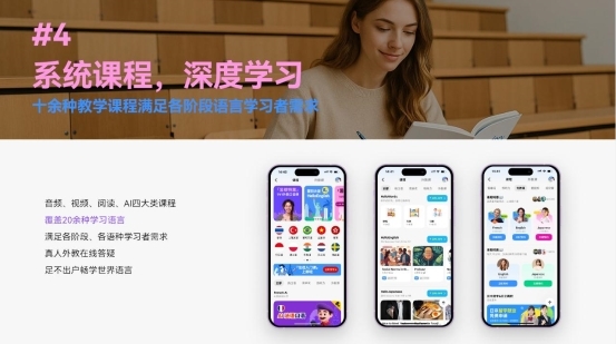 (4)碎片化学习设计:通勤时刷动态圈积累生活词汇,午休时参加 商务谈判 主题直播,睡前用 AI 陪聊巩固当日所学。